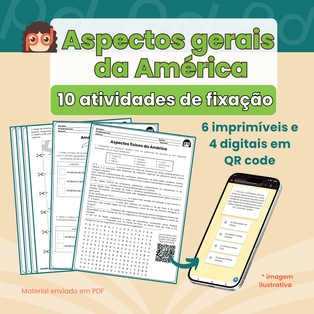 As atividades favorecem a compreensão da organização do aspectos físicos e regionalização da América, por meio de diferentes estratégias de aprendizagem.