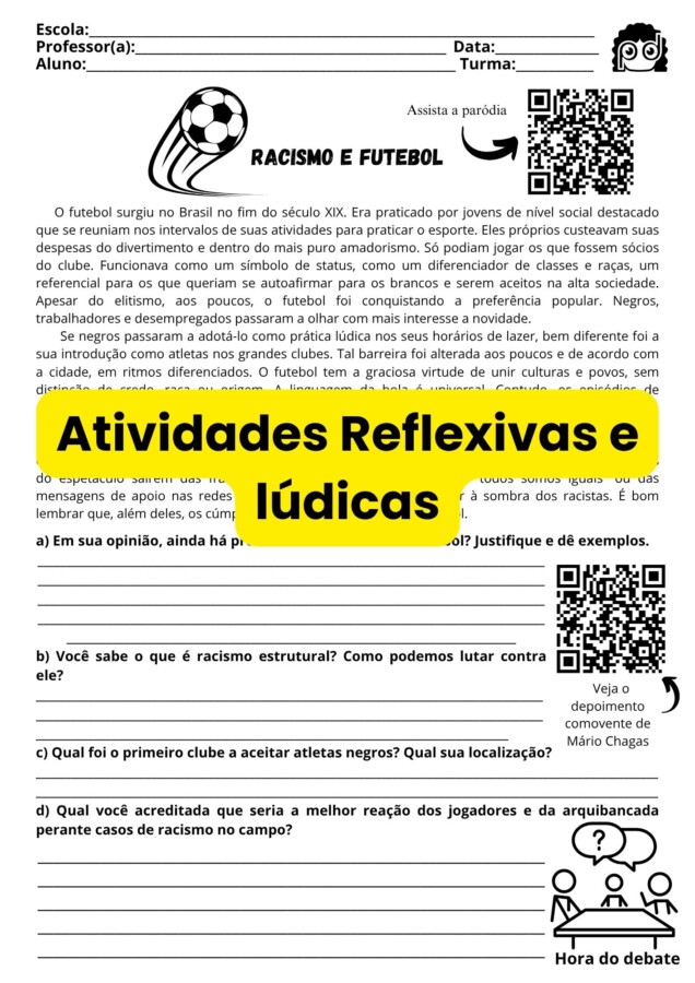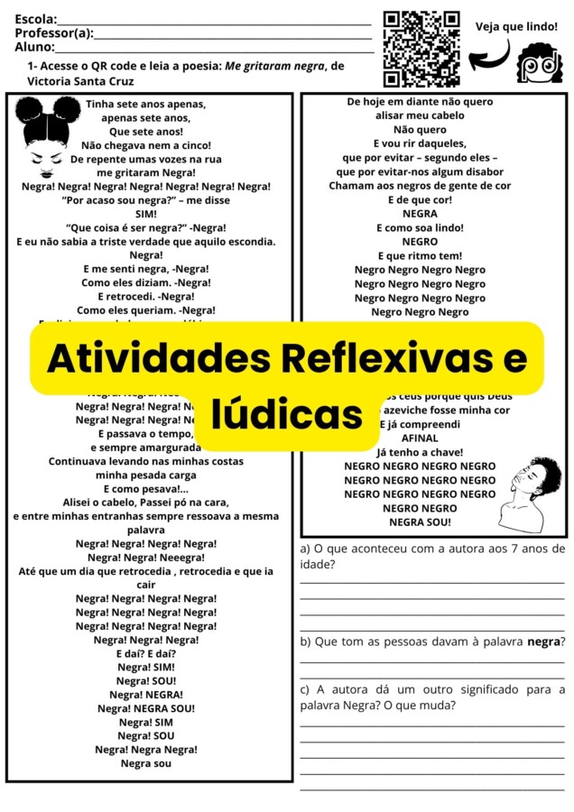 Sequência didática em QR Code, com links para atividades digitais;