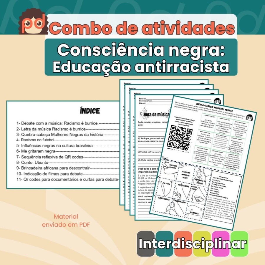 💡 Ideal para professores que desejam desenvolver uma educação antirracista de forma prática e inspiradora, alinhada à BNCC, abordando temas como identidade, representatividade, cultura afro-brasileira e diversidade social.